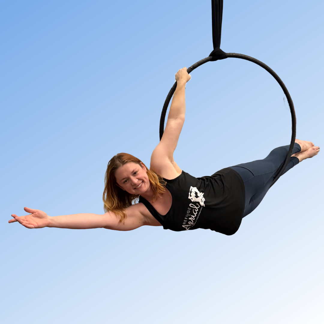 Alaina is the owner at Refuge Aerial who primarily teaches trapeze, lyra, and silks. With a background in dance and fitness, her love for aerial began in 2017 and grew into what she and her co-founder built at Refuge Aerial. Alaina loves sharing with in her students’ goals, finding the best and most fun ways to get moving, make progress, and achieve awesome things.